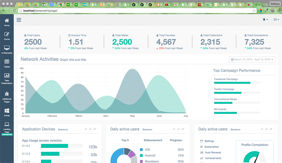 欢迎到Gentelella, 一个响应式的,扁平的和全功能的管理模版,仅仅在ThemeForest上面有销售。这个模版基于Bootstrap 3,使用先进的技术例如HTML5和CSS3,可以用于任何规模的后端方案。